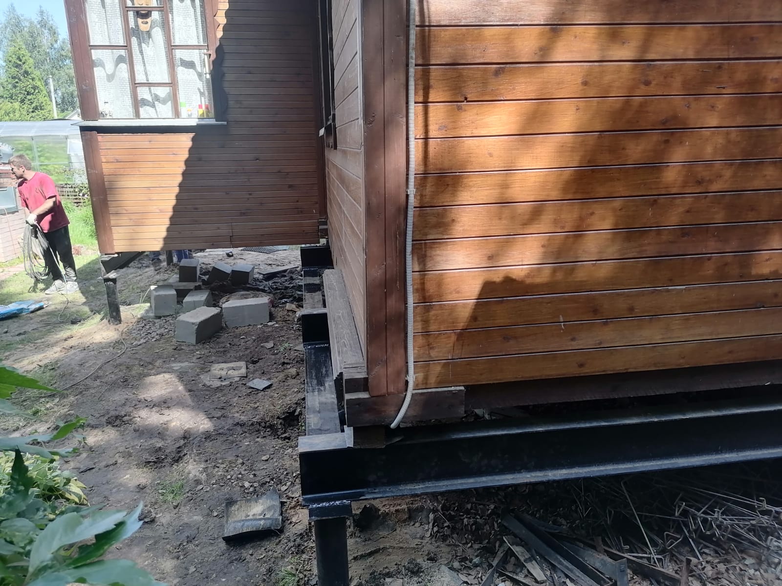 —Заменили старый фундамент на винтовые сваи с двутавровой балкой 200мм