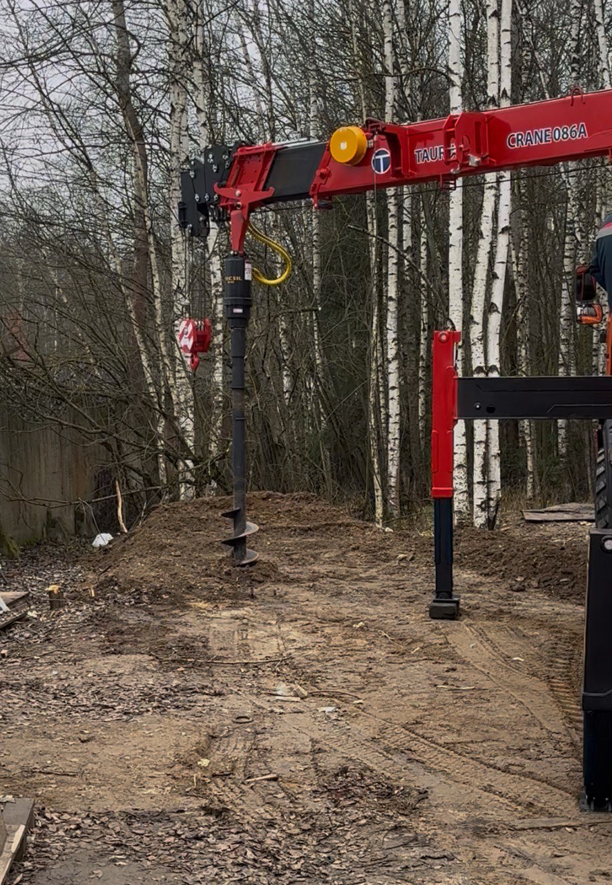 Монтаж винтовых свай спецтехникой в труднодоступных местах в Дмитрове
